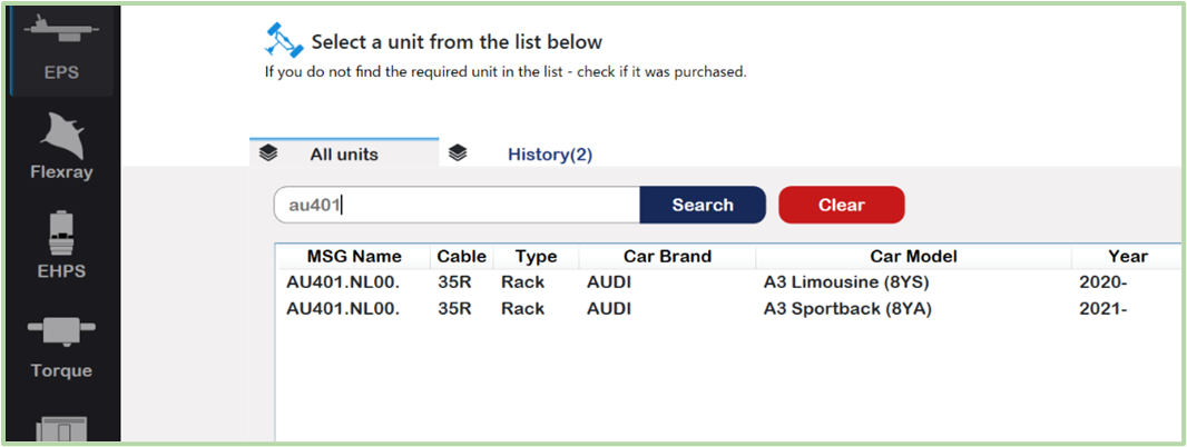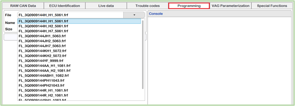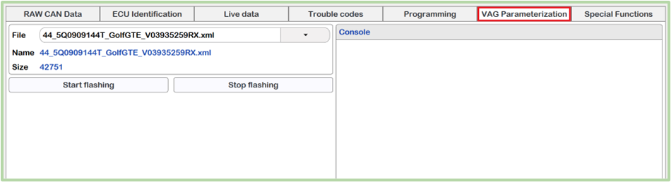 This tab is useful for changing the control settings (parameters) depending on the body or configuration of the vehicle. This function is only available for the VAG Group line.