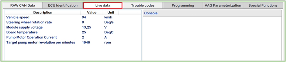 Live Data is a real-time monitoring function that displays current operating parameters from electronic control unit (ECU) while the system is active.