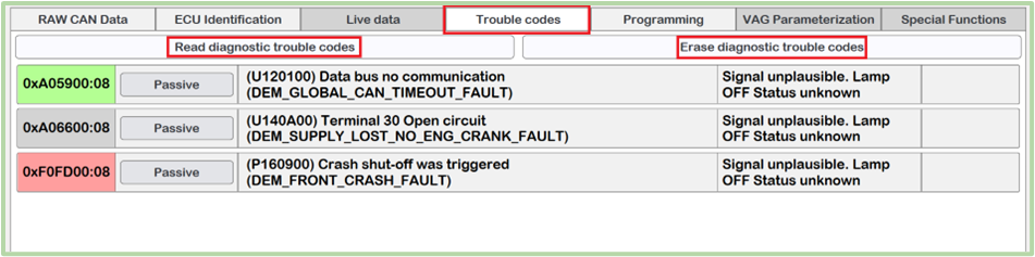 It provides the ability to read errors from the control unit, along with their description and status. The color of the error code means if this is important or not.