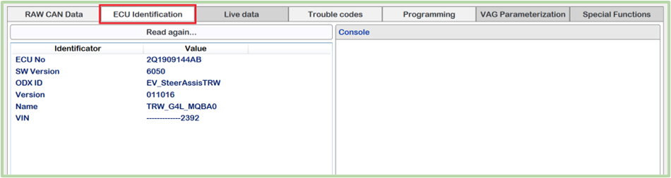 If ECU Identification tab is available in the diagnostics menu it means we can reach such useful information as firmware version, VIN code, calibration, etc.